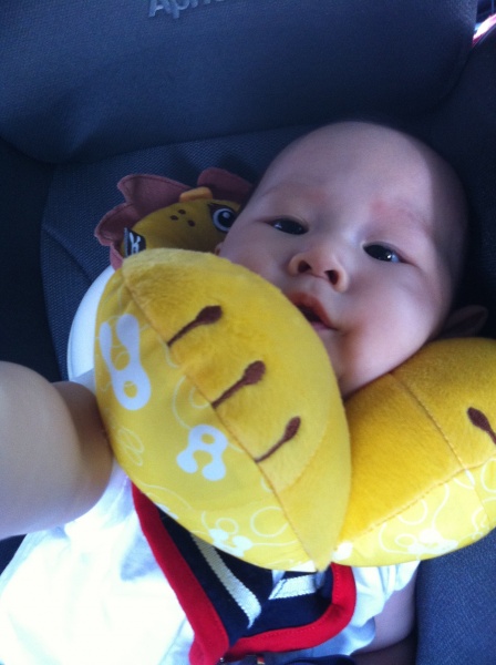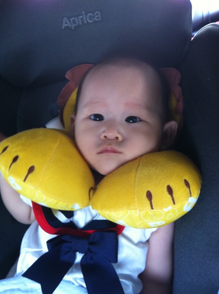 所以即使從剛出生的軟趴趴小北鼻,我們也是讓她乖乖的躺在汽座裡。